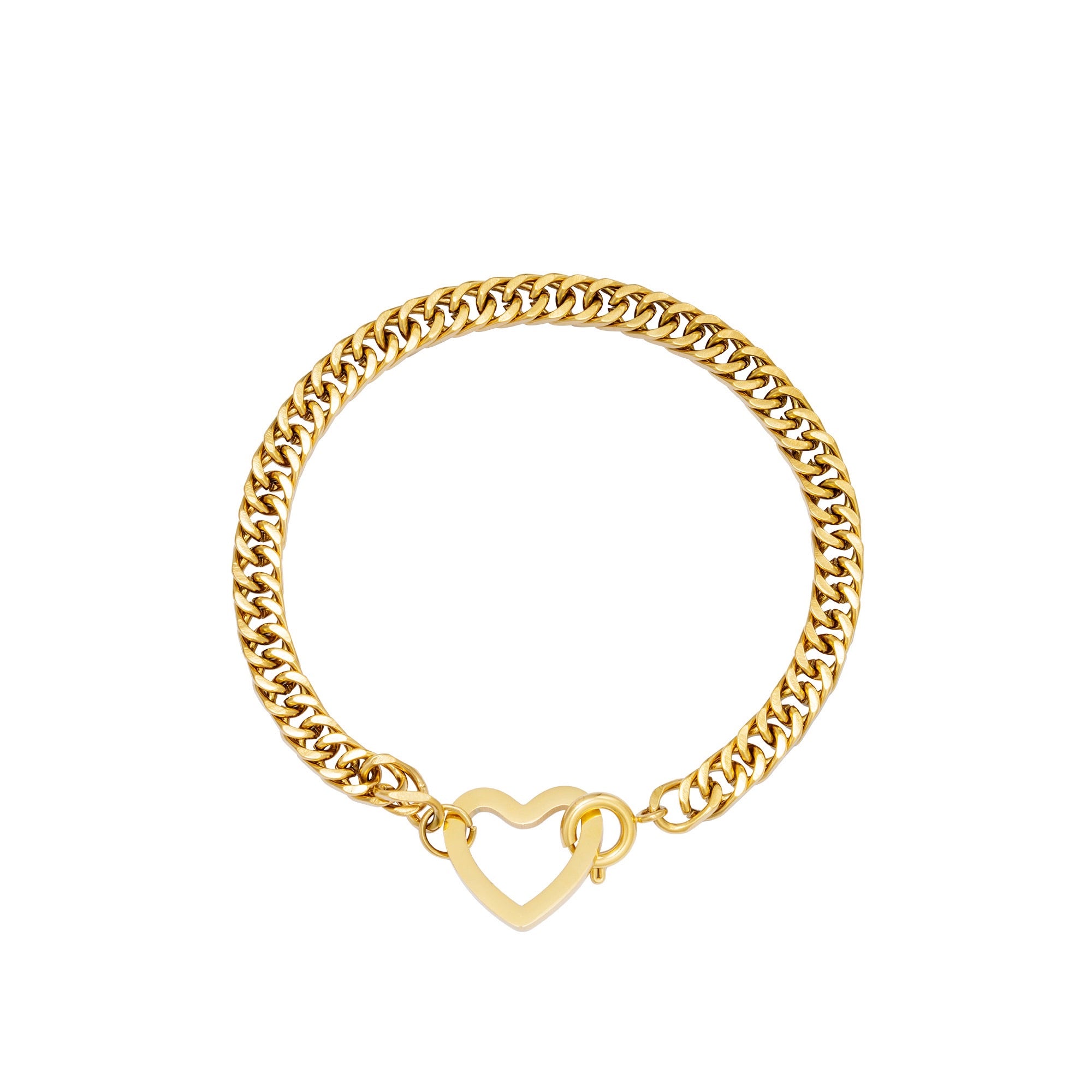 Love Bracelet in het goud. Mooie schakelarmband met hart hanger.