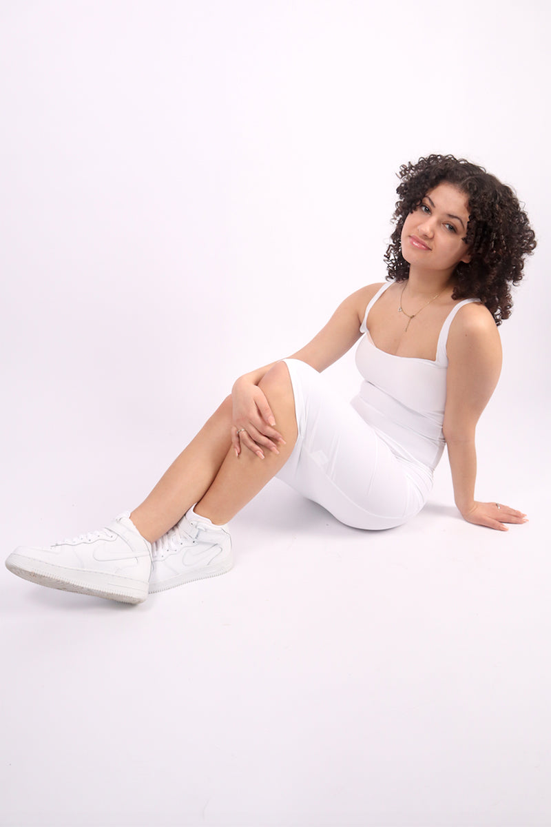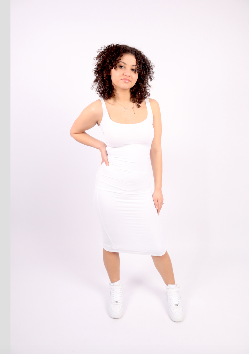 Deze zomerjurk met bandjes is op vele manieren te combineren. Stijl de jurk met een stoere spijkerjas en sneakers voor een sportieve look.