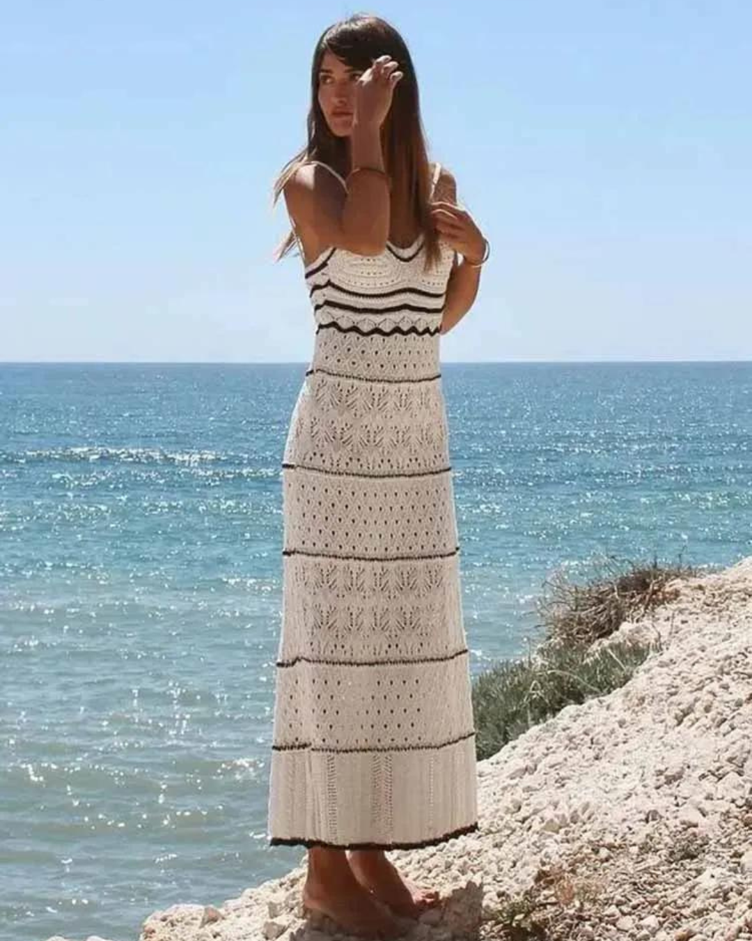 Tijdloze Elegantie: Het mouwloze ontwerp en de subtiele details maken de Selina veelzijdig en perfect voor zowel casual stranddagen als zomerse avonden uit.