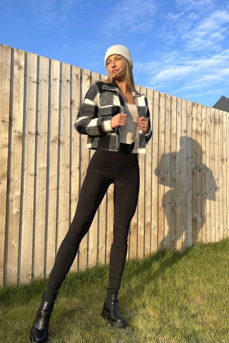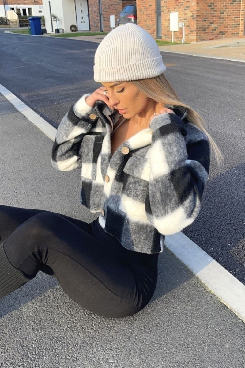 De checked trend is nog steeds erg geliefd! Combineer deze cropped jas met een zwarte skinny jeans en boots voor een sportieve look.