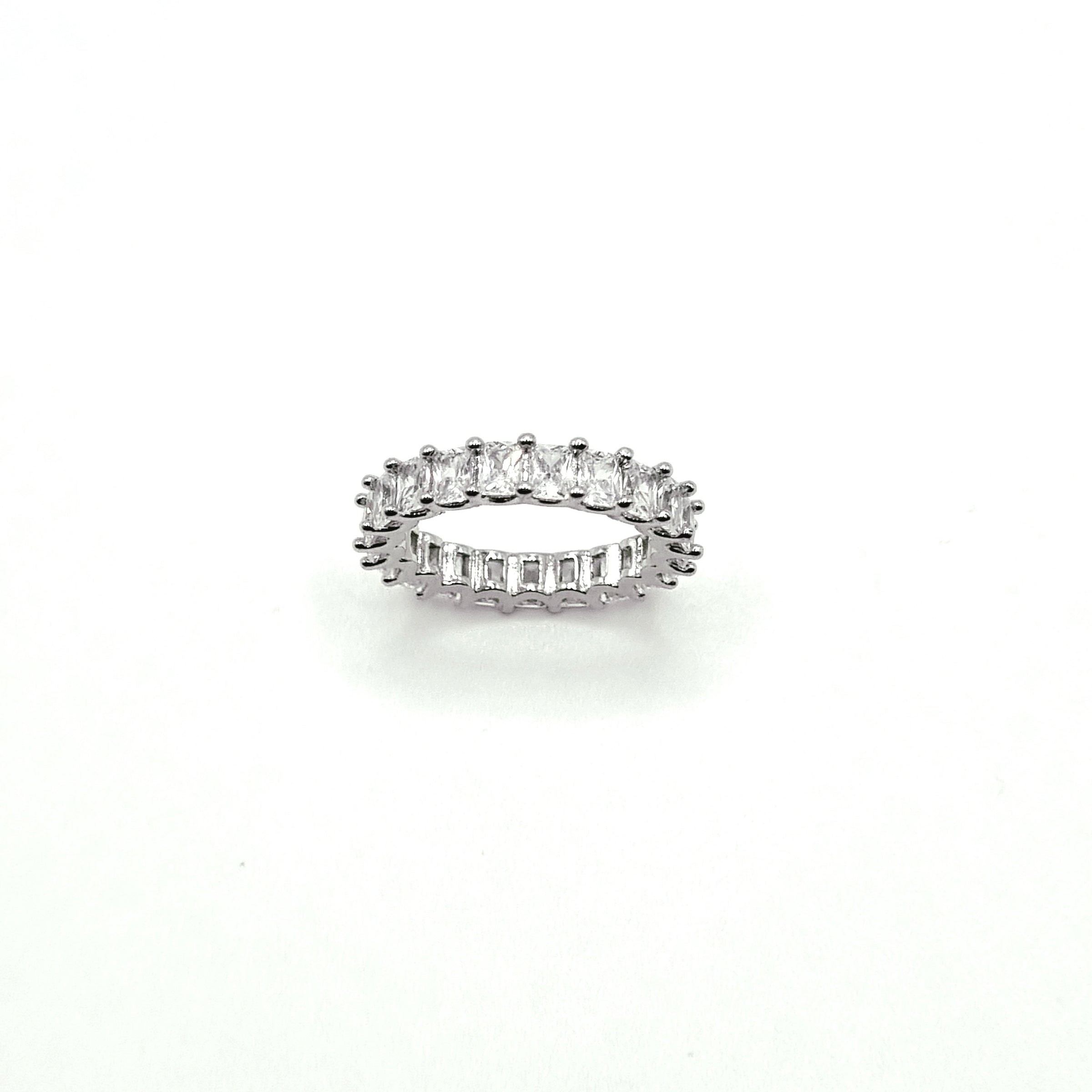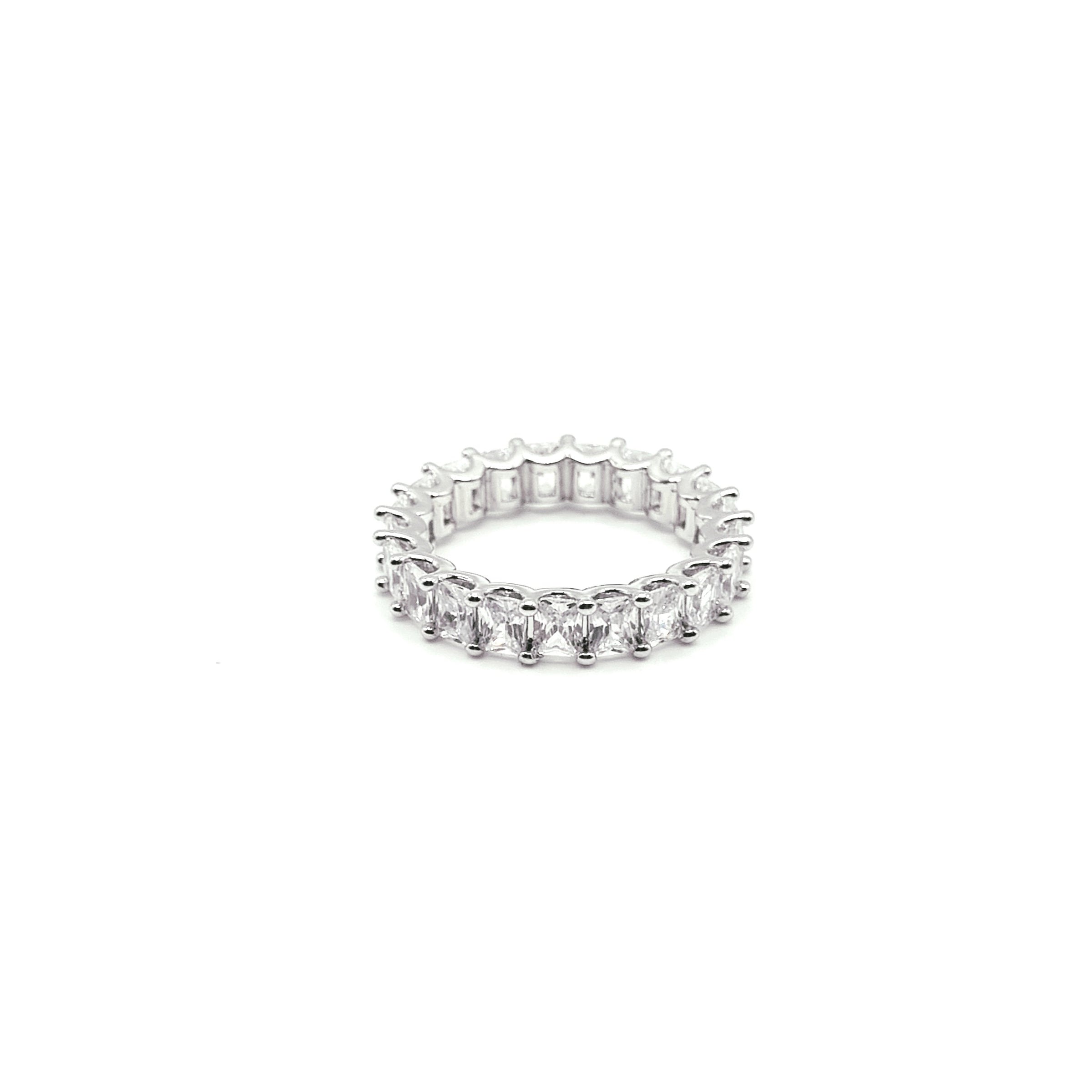 Deze ring bezet met allemaal Zirkonia stenen en is verhuld in het zilver. Deze ring is ook verkrijgbaar in het goud.