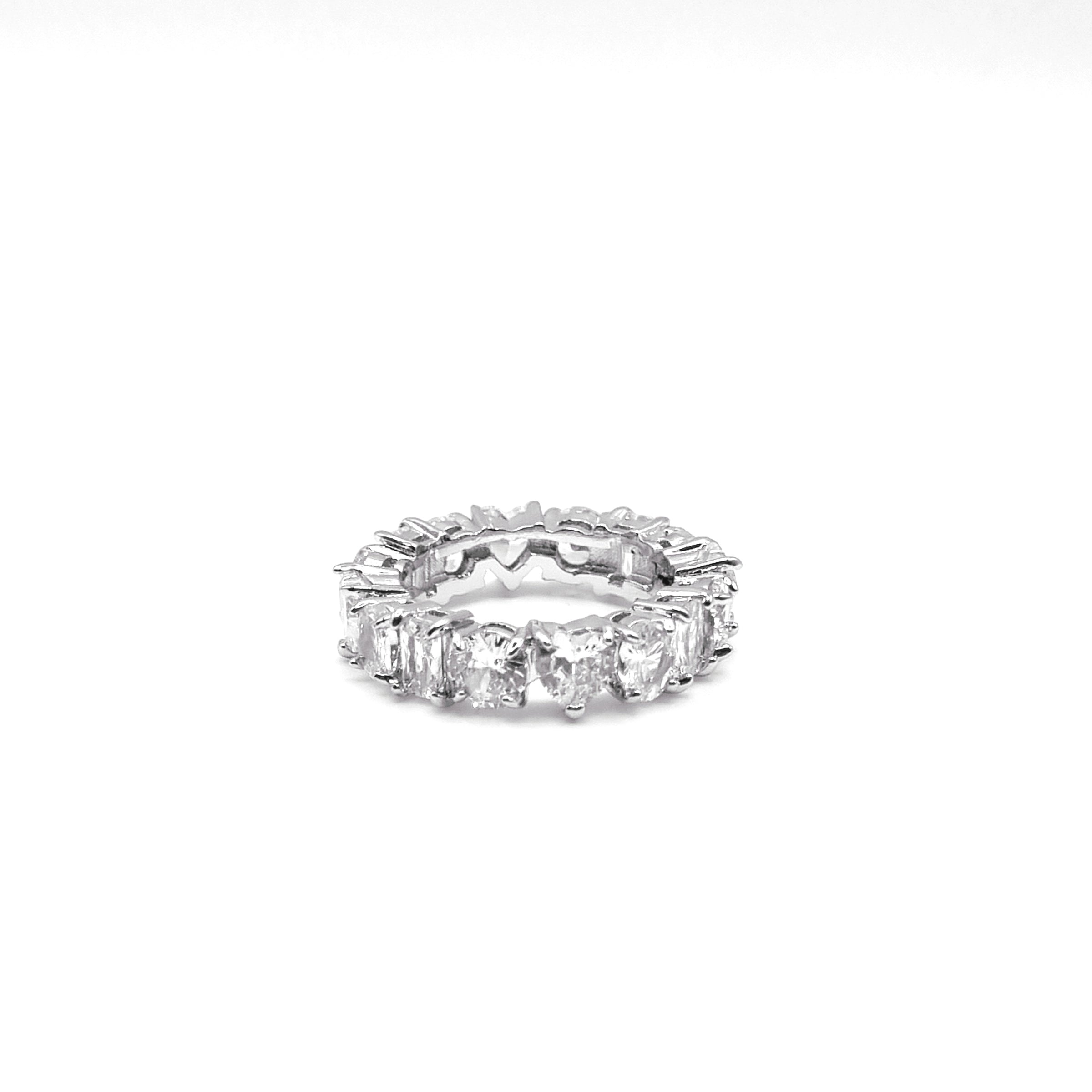 Deze ring bezet met allemaal verschillende stenen (hart, rond, vierkant) en is verhuld in het zilver.