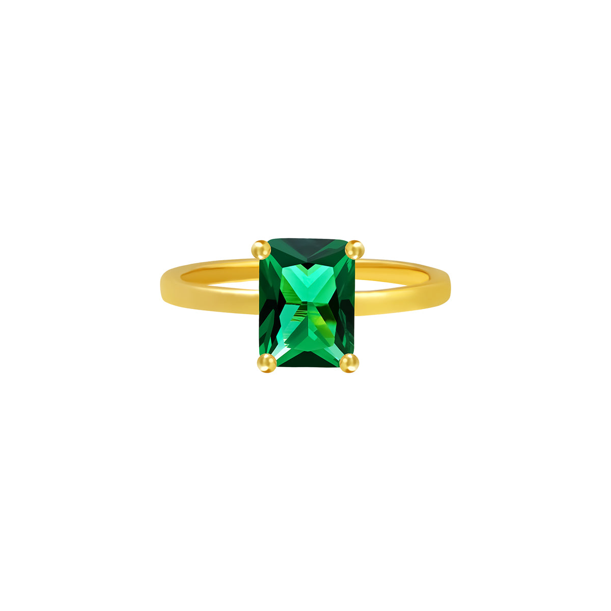 Deze ring bezet met een groene Zirkonia steen en verhuld in het goud.