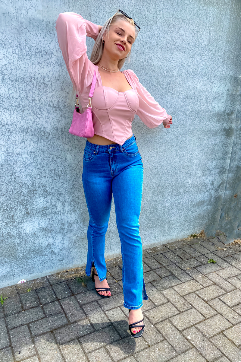 Korset top met pofmouwen in het roze